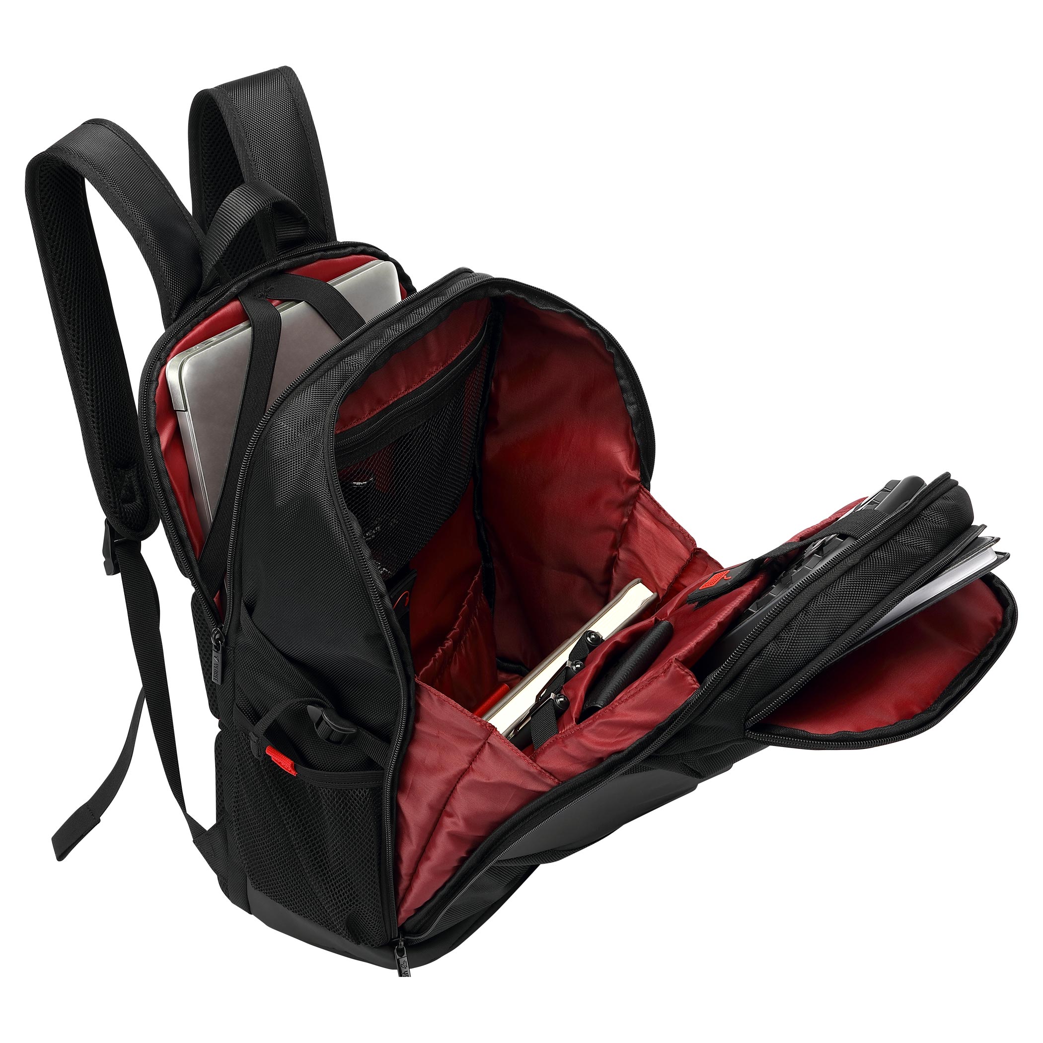 SHIELD nabízí 3 hlavní přihrádky s několika sloty a kapsami, včetně 3 vyhrazených kapes na herní zařízení. Jsou navrženy a upraveny pro bezpečné skladování a přepravu klávesnic, sluchátek a notebooků.Maximální ochrana díky pevnému skeletu