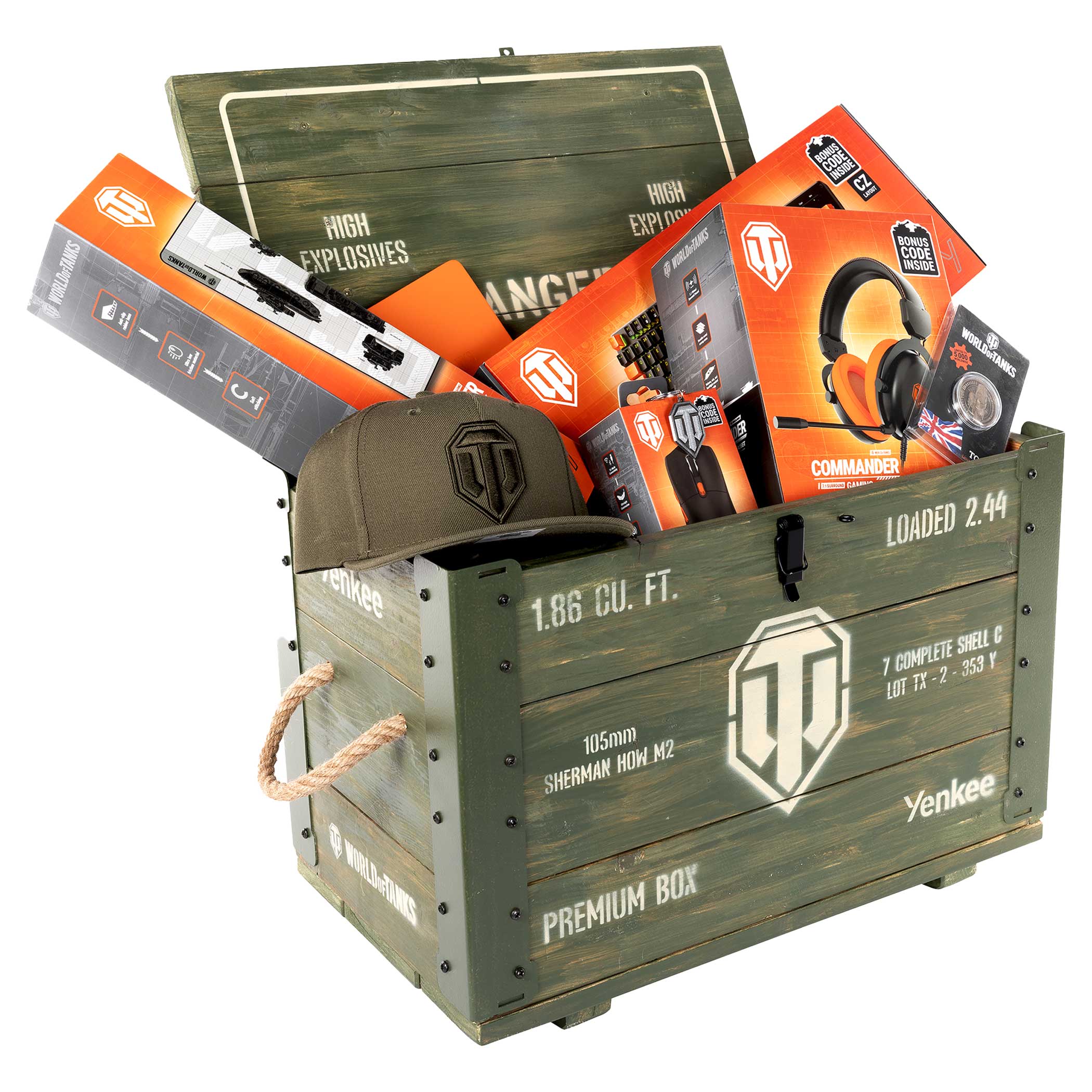v bedně na tebe čeká i exkluzivní World of Tanks merch. Stylová čepice, limitovaná kovová mince, elegantní zápisník a originální přívěšek z kolekce WoT. Každý detail byl navržen tak, aby potěšil pravého fanouška této legendární hry a udělal z bedny sběratelský klenot.