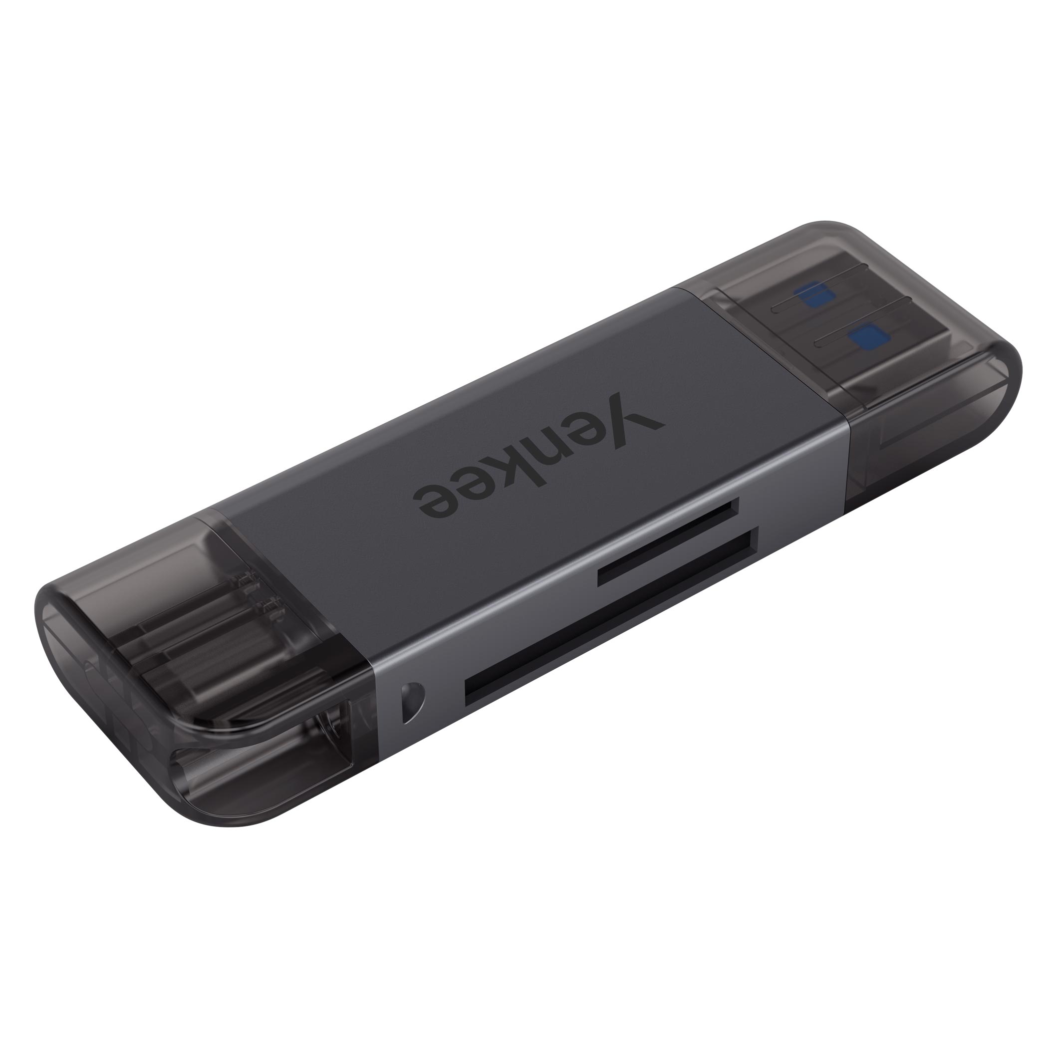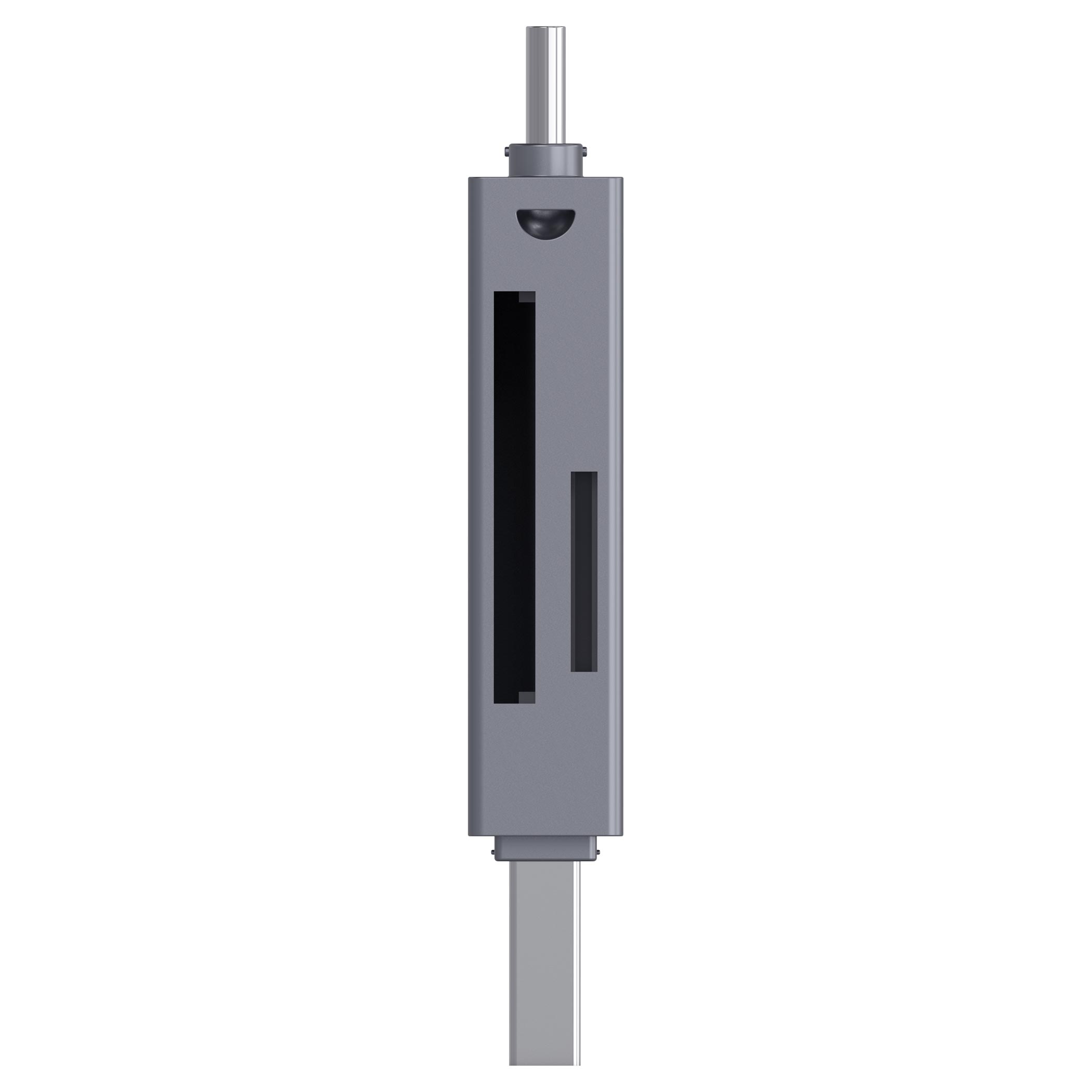 Univerzální USB čtečka karet podporuje SD, Micro SD a TF karty. Dva konektory (USB-A 3.0 a USB-C 2.0) umožňují připojení k chytrým zařízením. Rychlost přenosu dat až 5 Gbps. Hliníkový plášť a kompaktní rozměry činí čtečku ideální na cesty.