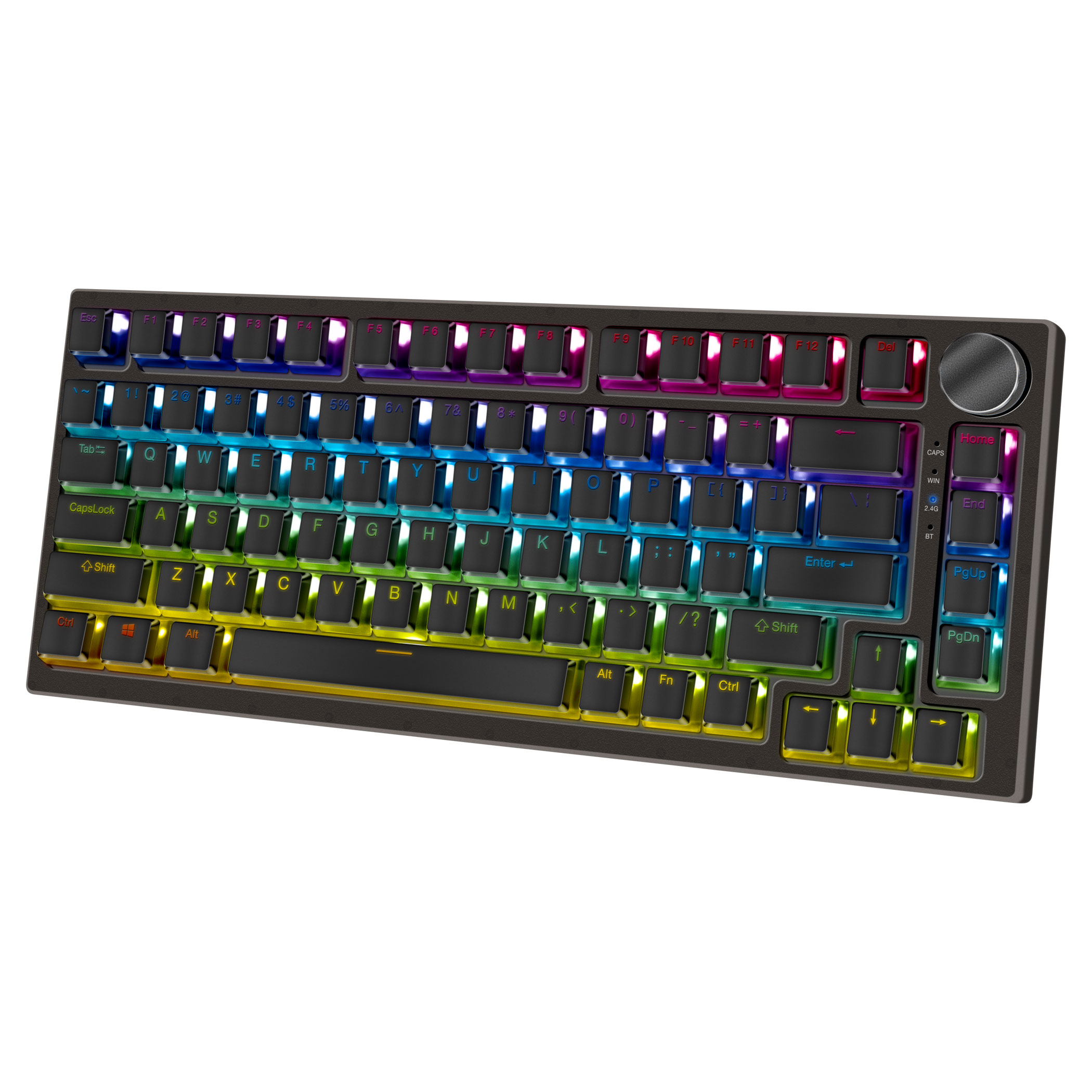 YKB 30 ODYSSEY Klávesnici můžete připojit jak přes přiložený odnímatelný kabel, tak přes 2.4G USB dongle schovaný ve spodní části klávesnice, ale dokonce i přes Bluetooth. Integrovaná baterie o kapacitě 4000mAh zajistí klávesnici bezproblémový provoz po dobu až 10 dní.Kompaktní 75% tělo poskytuje všechny potřebné funkce a zároveň šetří drahocenné místo na vašem stole. Překvapí perforované kovové kolečko v pravém horním rohu klávesnice, které slouží na ovládání hlasitosti a pozastavení/puštění hudby či videa.Specifikace: