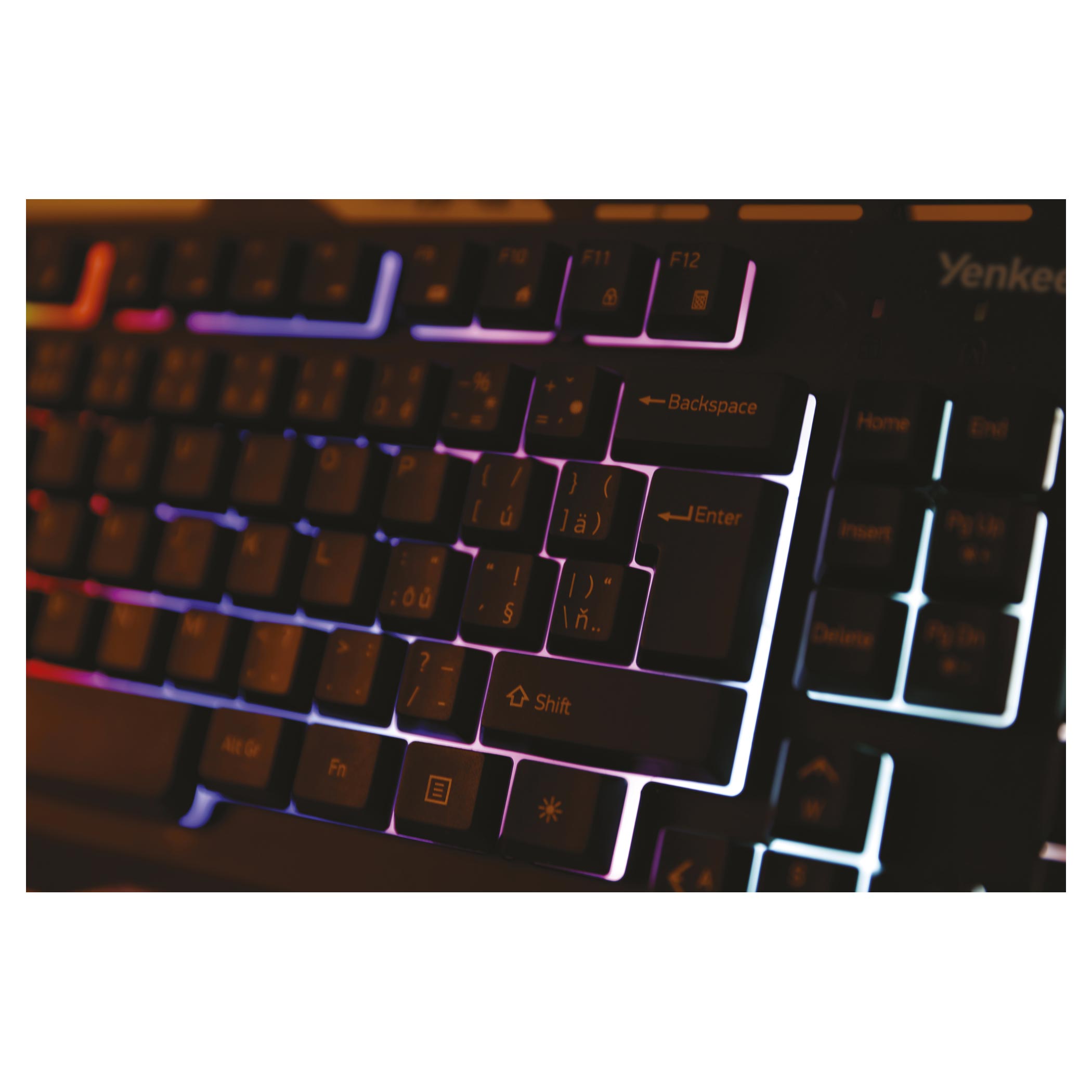 SHADOW YKB 3200 je herní klávesnice s kovovou deskou a nastavitelným podsvícením s duhovými barvami. K dispozici je celkem 9 režimů podsvícení (včetně vypnutí podsvícení), které můžete nastavit podle aktuálního použití, typu hry nebo prostředí.Odolné "rubber dome" klávesové spínače