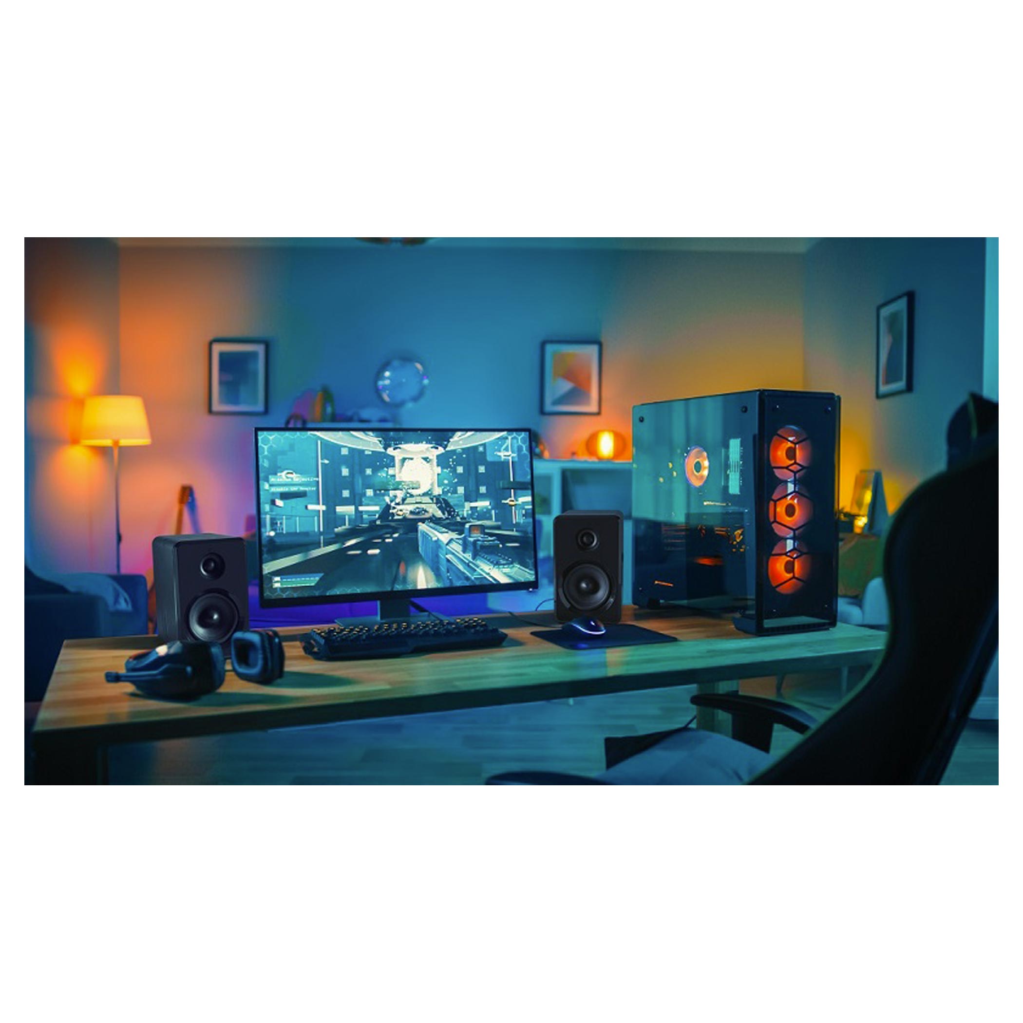 Tyto malé, výkonné reproduktory nabízejí skvělý zvuk s bohatými basy. Připojte je k chytrým zařízením přes AUX, USB nebo Bluetooth 5.0. Ovládání je intuitivní a pohodlné, navíc skvěle vypadají na každém pracovním stole.