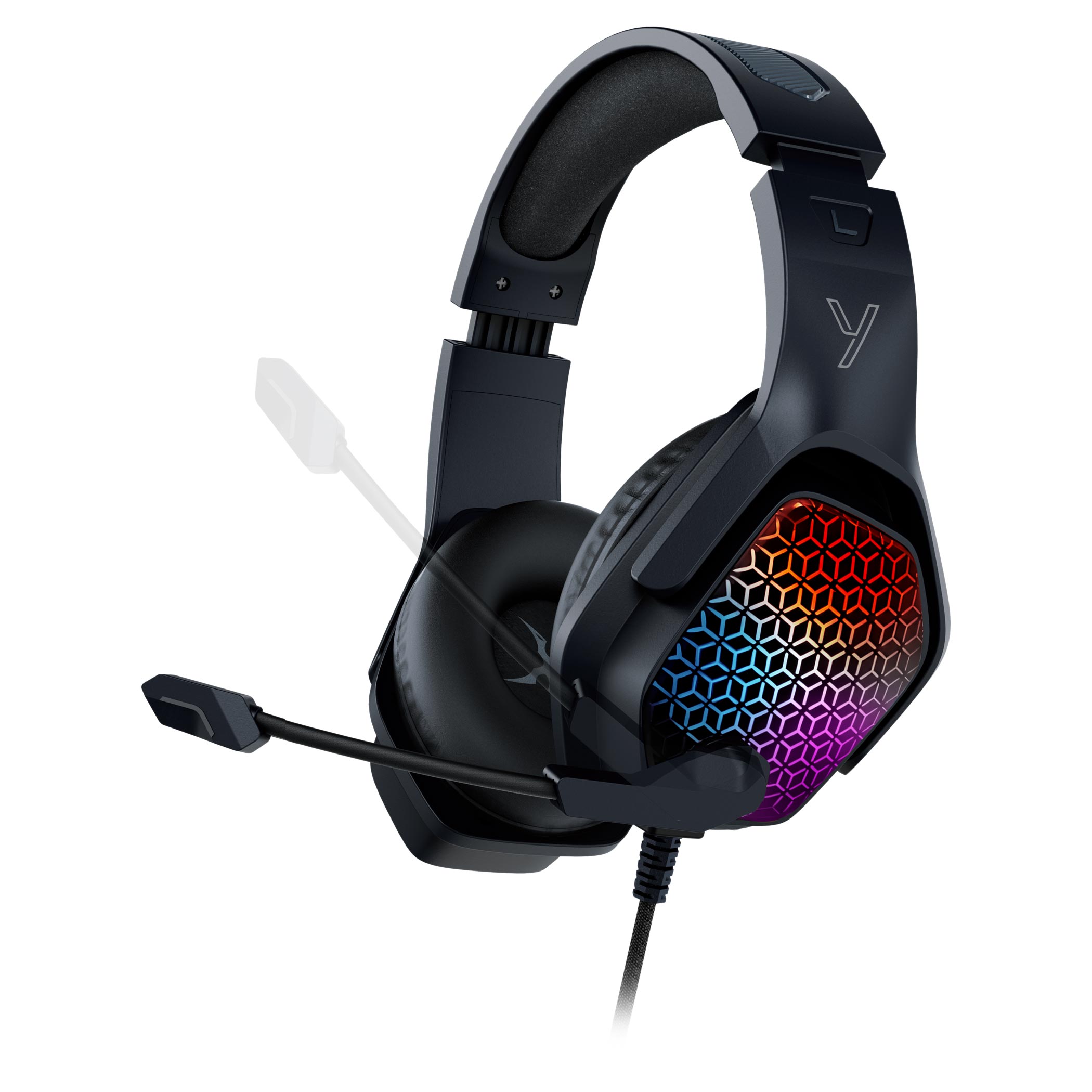 TRINITY - drátová herní sluchátka pro nekompromisní audio zážitek! S dvěma oddělenými 3.5mm jacky pro přehrávání a použití mikrofonu poskytuje maximální flexibilitu připojení.RGB podsvícení pro váš herní setup