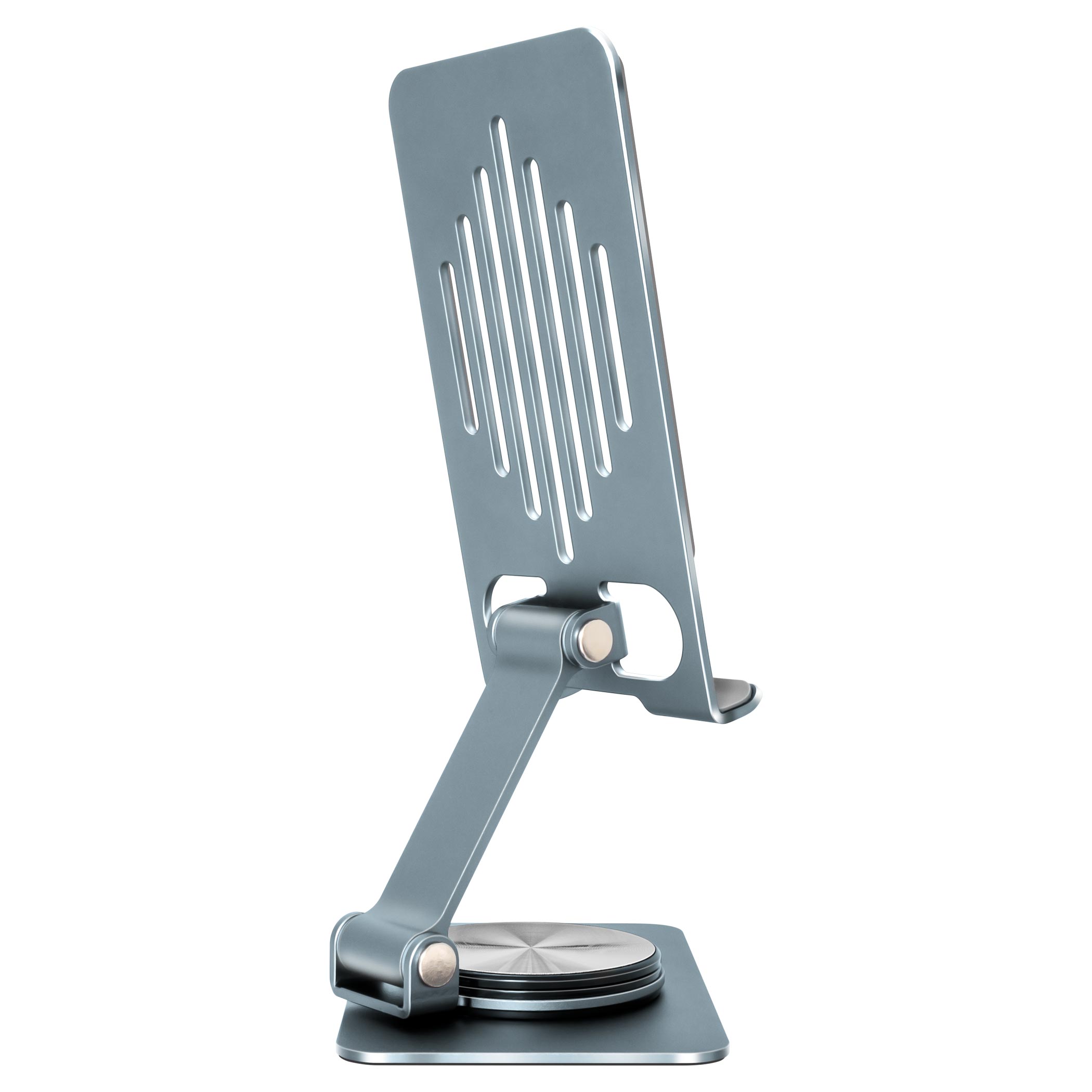 Stojan na tablet Task, s robustní konstrukcí ze slitiny hliníku, je otočný v 360 stupních. Díky tomu lze plynule nastavit pozorovací úhel. Praktický promyšlený design se hodí jak domu, tak i do kanceláře.
