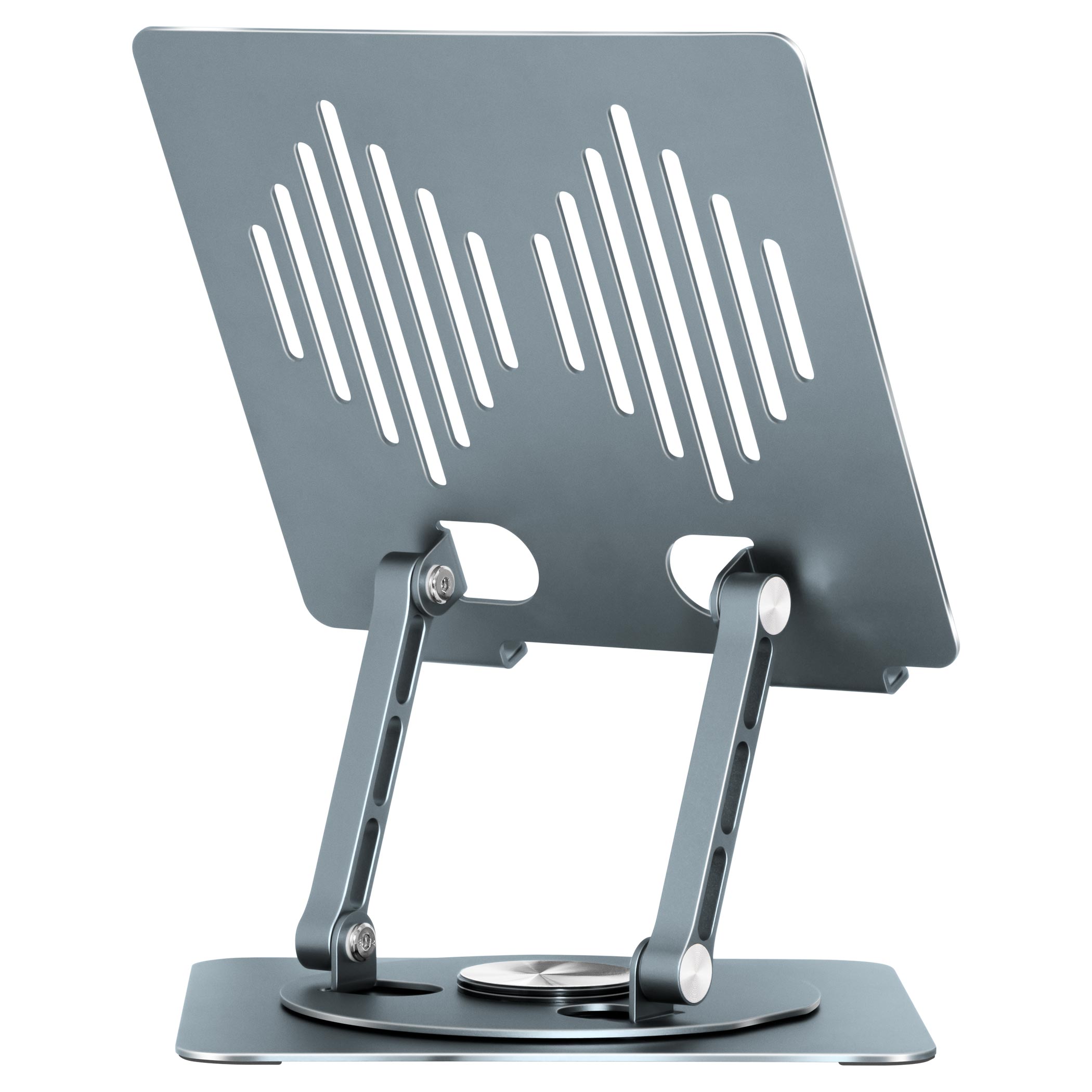 Stojan na notebook i tablet Task, s robustní konstrukcí ze slitiny hliníku, je otočný v 360 stupních. Díky tomu lze plynule nastavit pozorovací úhel. Praktický promyšlený design se hodí jak domu, tak i do kanceláře.