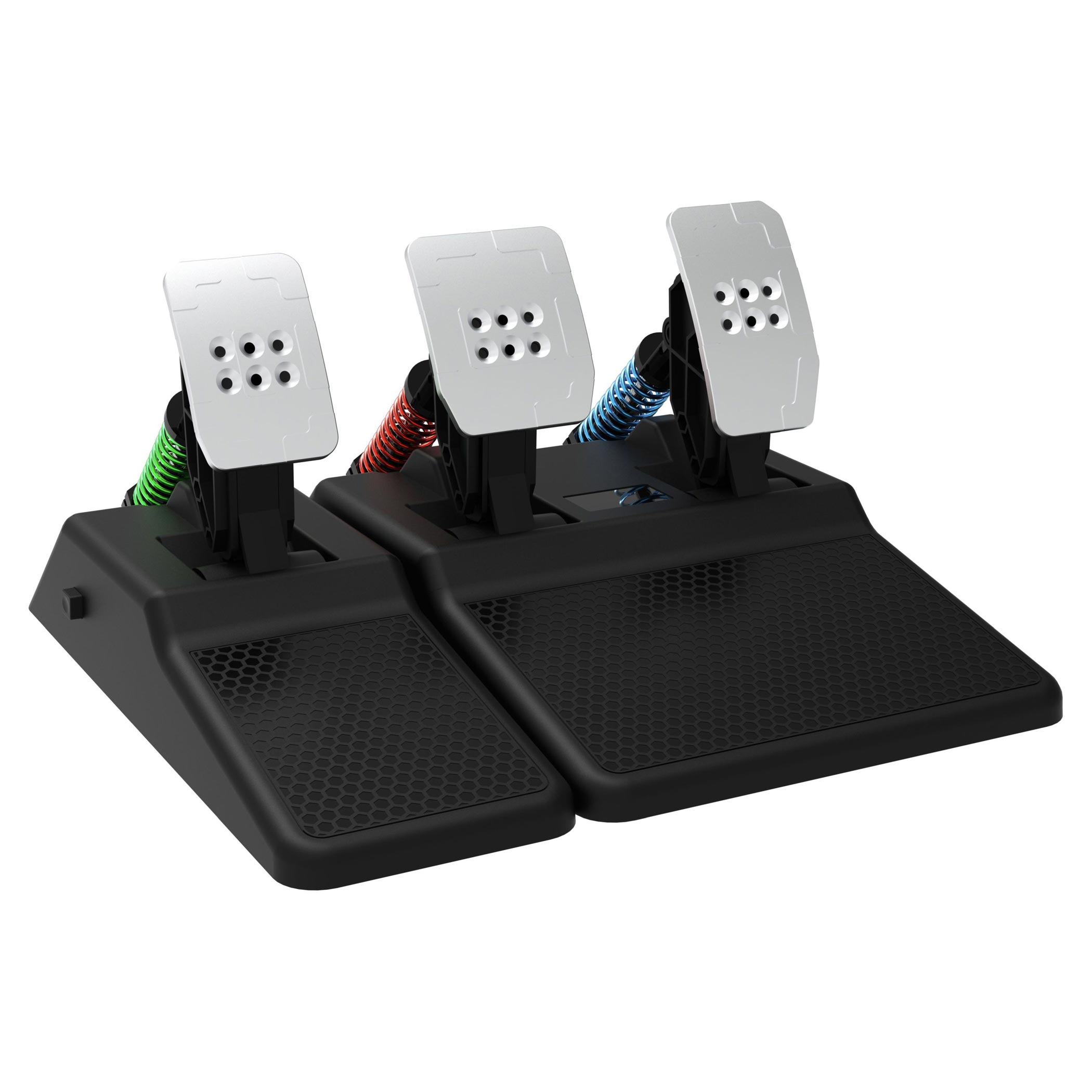 Kovové pedály dodávají autentičnost a precizní odezvu. Spojkový pedál lze navíc odpojit, takže si celou sestavu snadno přizpůsobíte podle vlastního stylu řízení.Texturovaný povrch volantu