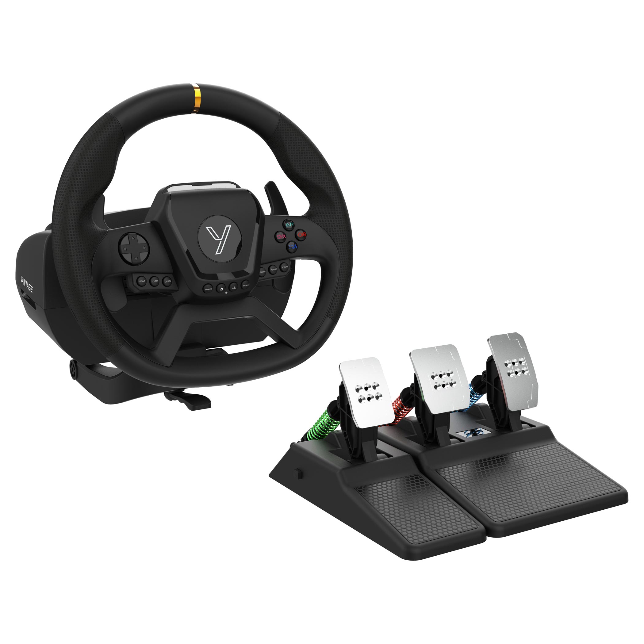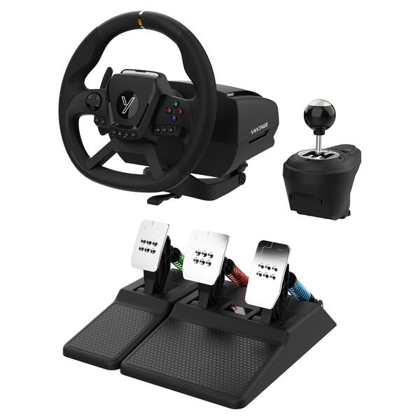 VANTAGE je závodní volant, který přináší realistický zážitek z řízení díky skutečnému force feedbacku, kovovým pedálům s odnímatelnou spojkou a H‑řadicí páce v balení. Díky pevnému uchycení ke stolu, texturovanému povrchu pro jistý úchop a možnosti detailního nastavení přes mobilní aplikaci získáte absolutní kontrolu nad každou zatáčkou i celým závodem.