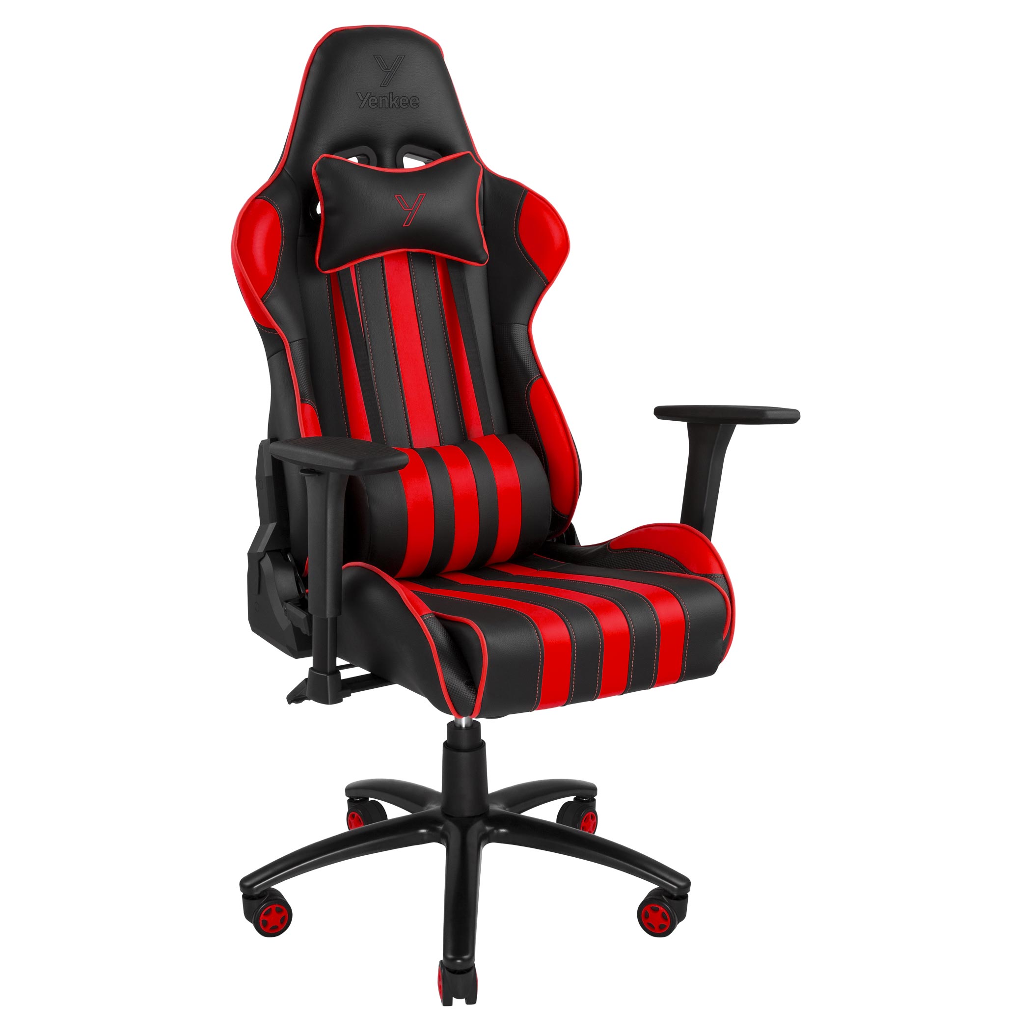 Dodatečné pohodlí a optimální poloha těla jsou zajištěny bederní opěrkou a opěrkou hlavy. Umístění polštářů je nastavitelné pomocí elastických pásů upevněných na zadní straně židle.
