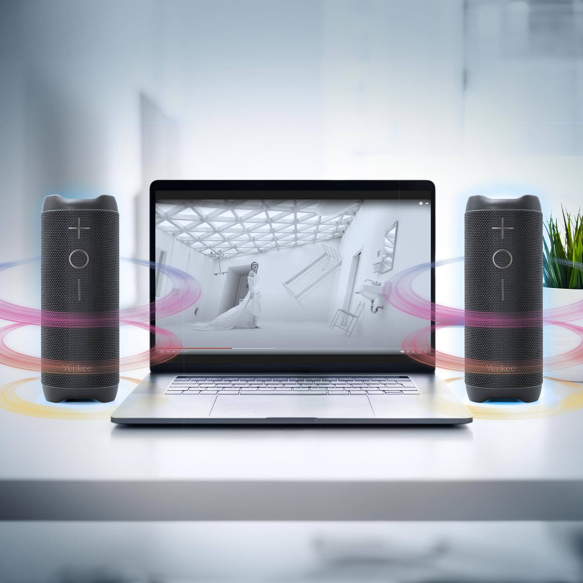 Zažijte trojrozměrný zvukový zážitek, který překonává tradiční stereo nastavení. Prostorový zvuk poskytuje výraznější pocit hloubky a směrovosti, vytvářející strhující poslechové prostředí. Duální reproduktory spolupracují v dokonalé harmonii a vytváří prostorový efekt, což vám umožní s nesrovnatelnou čistotou rozeznat jednotlivé nástroje a detaily při poslechu hudby.Moderní bezdrátové technologie